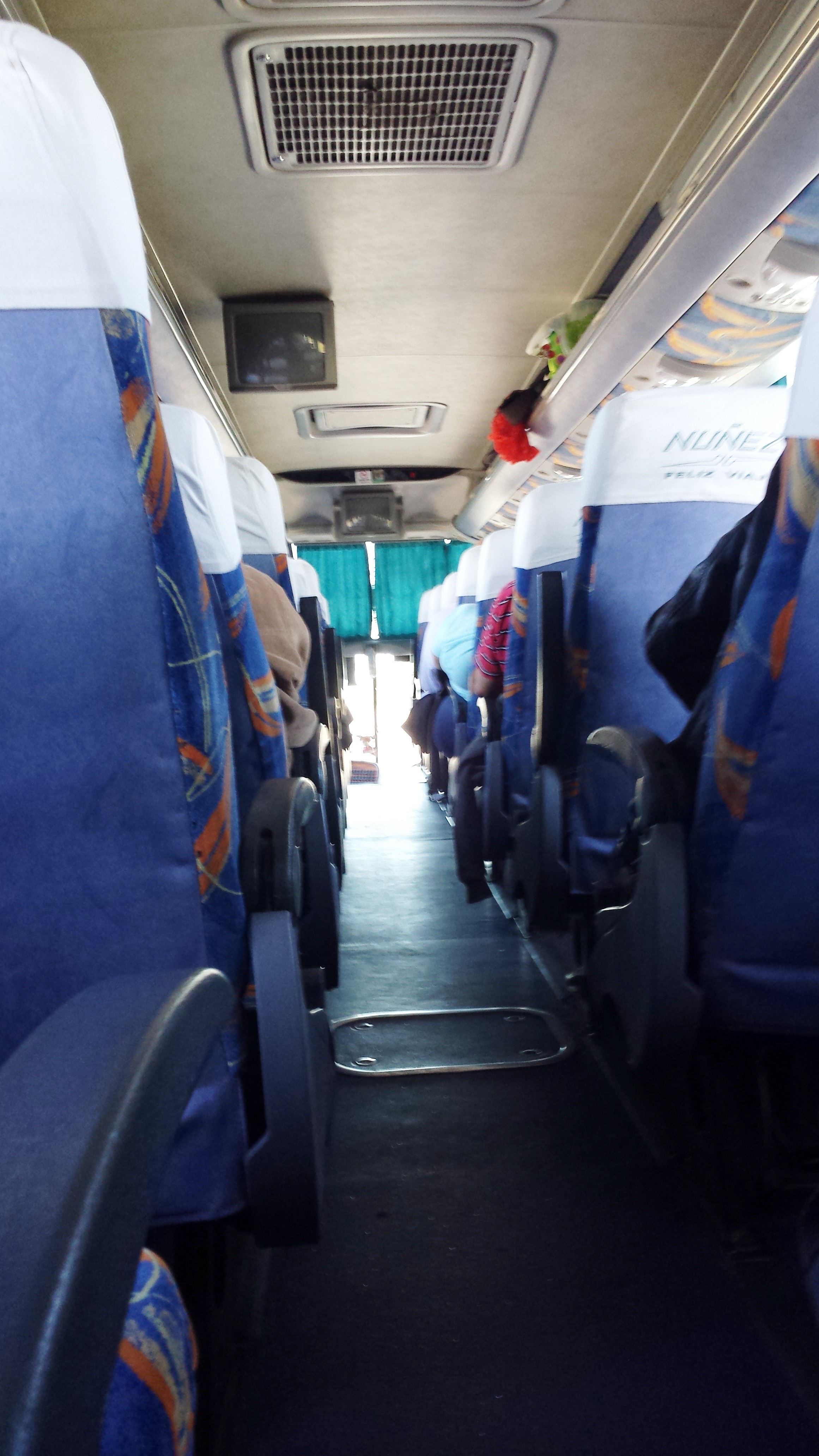 Nun, entlang konnte ich entspannen, ich machte es mir gemütlich. Nach mehreren Stunden Fahrt und einem ersten Schläfchen, wurde ich dann doch unsanft des Platzes verwiesen. Total übermüdet musste ich draußen im Regen mein Gepäck einchecken und dann meinen richtigen Platz aufsuchen. Natürlich saß auf diesem auch jemand. Eine Diskussion in Spanisch-Deutsch ging los. Ich sage nur, eine müde Katrin und zwei nervige Brasilianer. Ich habe aufgegeben und mir einen leeren Platz gesucht, in der Hoffnung, dass keine weiteren Leute einsteigen und ich Platz-Hopping betreiben muss.