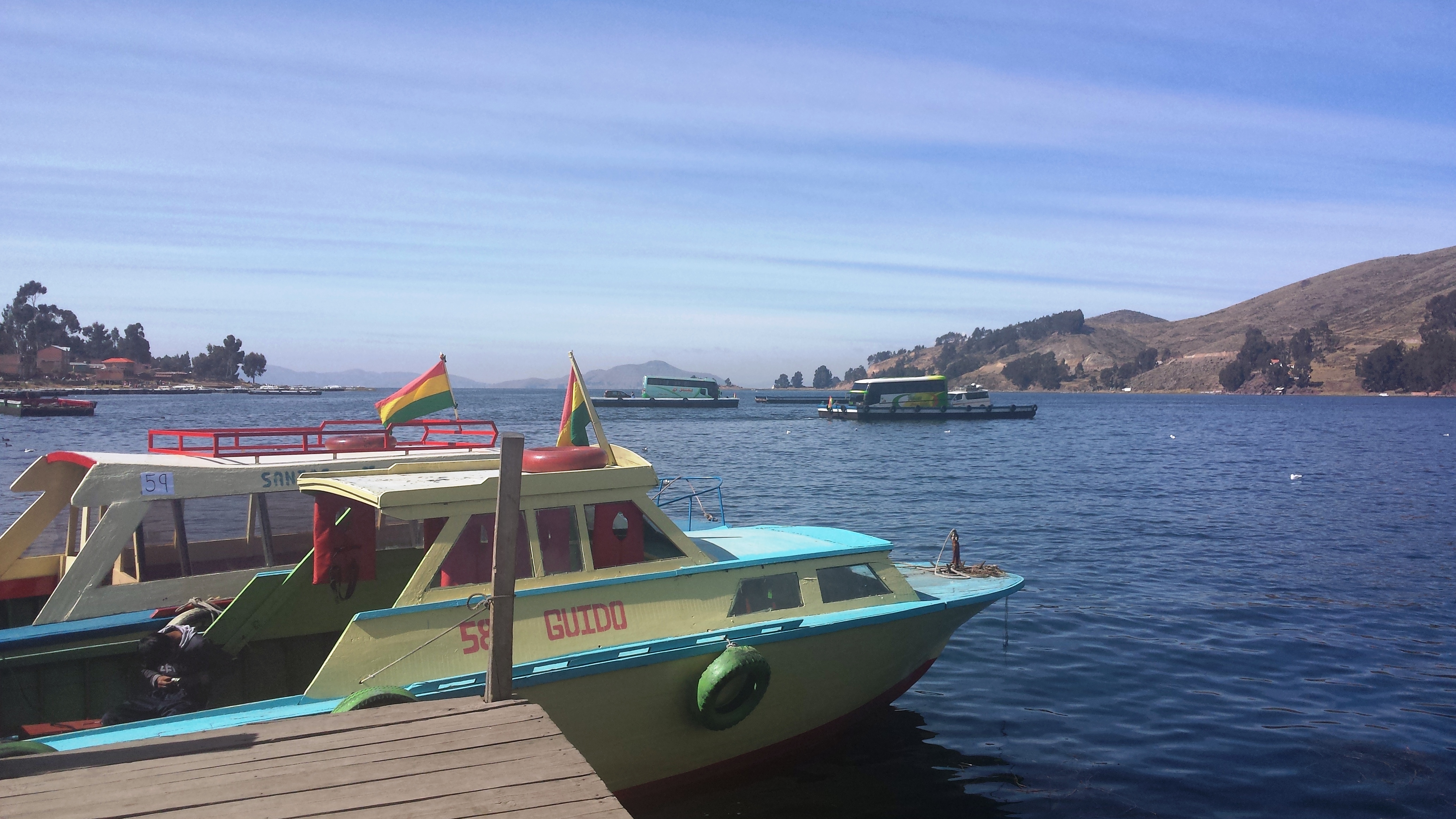 Neben mir saß ein Franzose, der mit seinen 2 Freunden auf Reisen war. Wir kamen schnell ins Gespräch und sie erzählten mir ihre Pläne für Copacabana. Mir wurde bewusst, dass ich völlig planlos unterwegs war. In den 4h Busfahrt haben wir gequatscht was das Zeug hält, so dass ich mich ihnen zu meiner Freude und Erleichterung anschließen durfte. Ich hatte nach einer Woche „Einsamkeit“ und ohne Travelbuddy keine Lust, die Isla del Sol allein zu erobern.