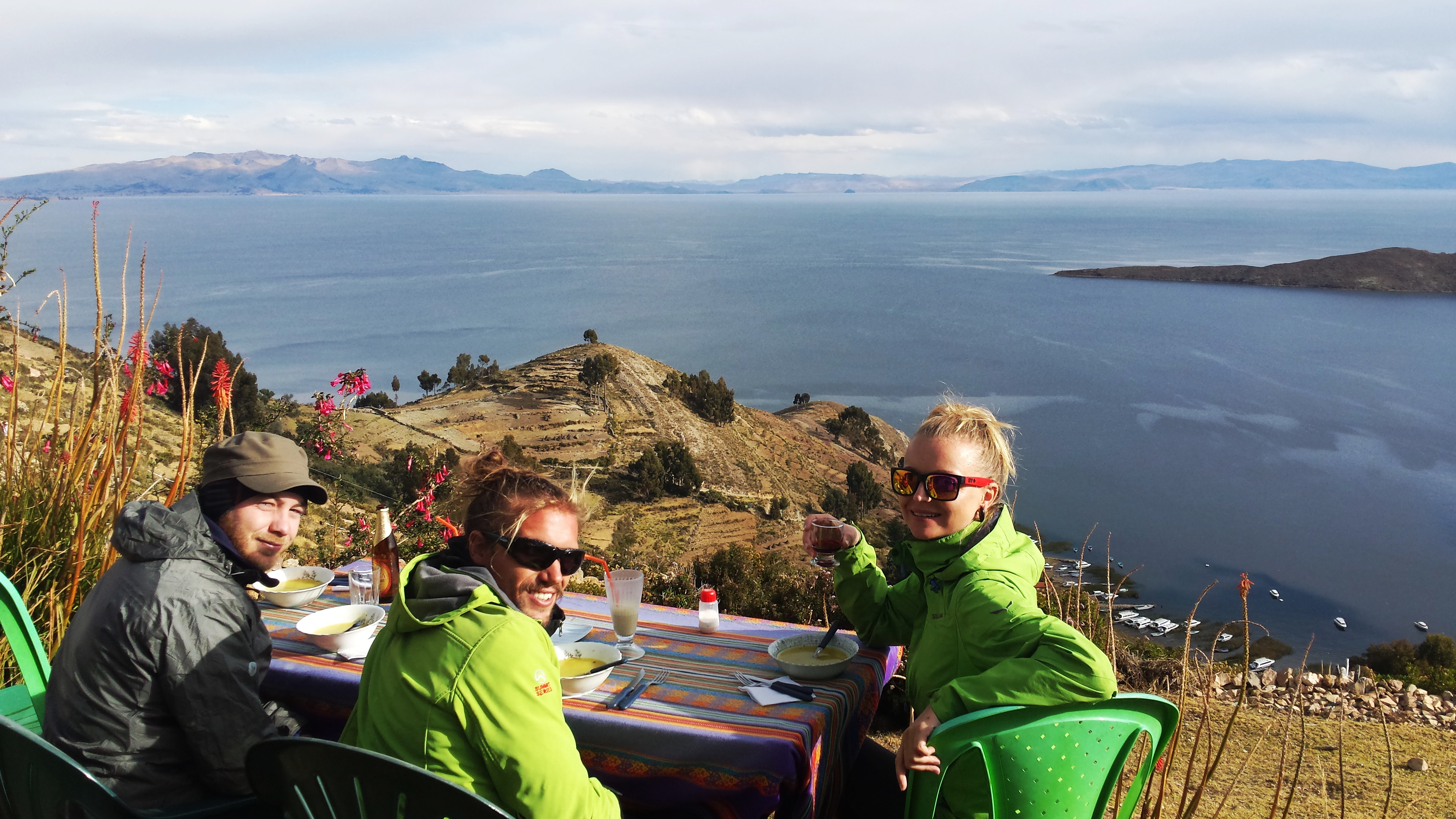 Am nächsten Morgen ging es 8Uhr schon wieder zurück Richtung Copacabana. Das Wetter war mehr als bescheiden. Da hatte ich wieder einmal bei der Planung meines Trips Glück gehabt, denn bei unserer Ankunft im Hafen trafen wir etliche Traveller, die ihren Trip zur Isla del Sol wegen des Wetters abgesagt haben. Meine neu gewonnenen französischen Freunde und ich frühstückten noch gemeinsam und dann stand schon wieder die Verabschiedung an. Während ich mittags nach Puno aufbrach, warteten die Jungs auf ihren Nachtbus nach Arequipa.