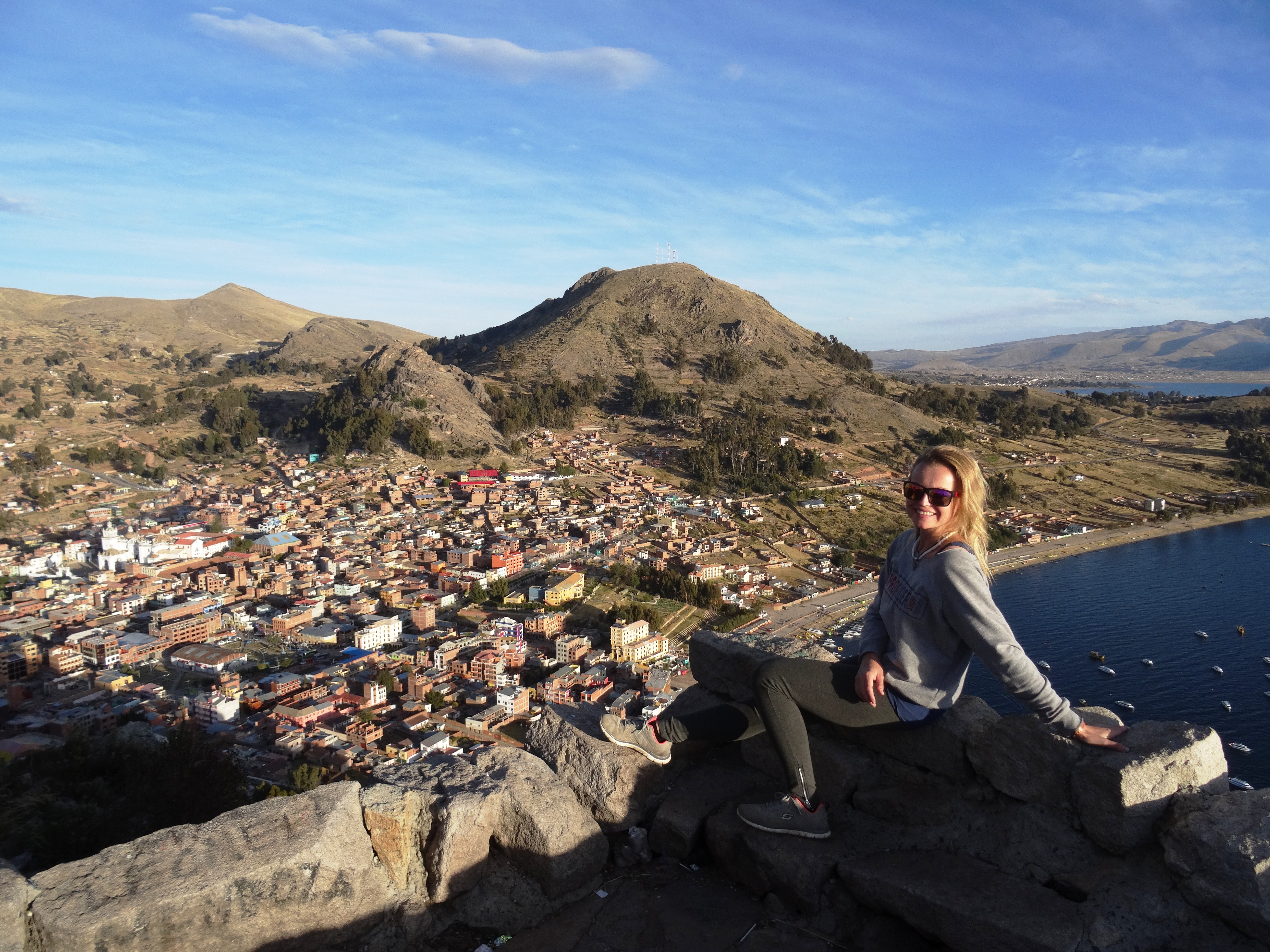 Ich liebe den Trubel, die Menschen, die Stadt – das steht außer Frage. Aber ich habe mittlerweile so viel Zeit mit mir verbracht …Wenn „Frau“ auf 4100m über dem Meeresspiegel die Aussicht auf den Titicaca See genießt, dann kann um sie herum, passieren was mag. Sie blendet die Welt aus und lässt das tiefblaue Wasser einfach auf sich wirken und erfreut sich daran, ein wenig Zeit auf diesem wundervollen Planeten verbringen zu können. So einfach ist das. So einfach kann es sein!