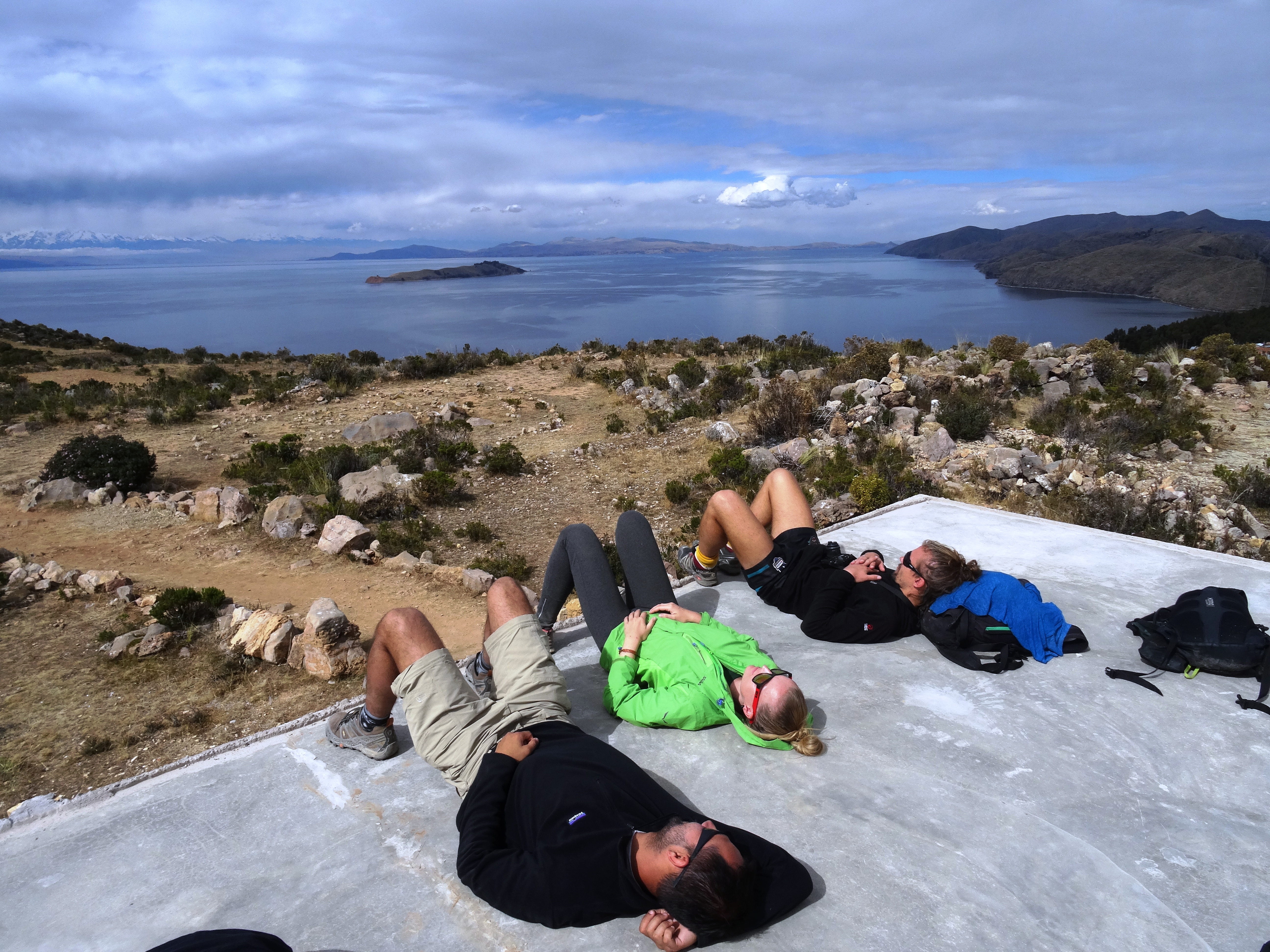 Am nächsten Morgen trafen wir uns alle am Hafen und traten die 3h Bootsfahrt in den Norden der Isla del Sol an. Schnell war klar, dass es auf der Insel wenig zu sehen gab. Darum ging es ja im Endeffekt bei diesem Trip auch – Natur pur am höchstgelegenen kommerziell schiffbaren Gewässer der Welt erleben. Wir entschieden uns den Weg von Nord nach Süd an der Küste entlang zu wandern. Nicht dass ihr denkt, ich rede hier von einem Strandspaziergang. Wir bewegten uns zwischen 3800m und 4100m Höhe und das bergauf und bergab. Es war so anstrengend, aber auch diesen Mirador (Aussichtspunkt) der Insel haben wir erklommen. Und es hat sich gelohnt.
