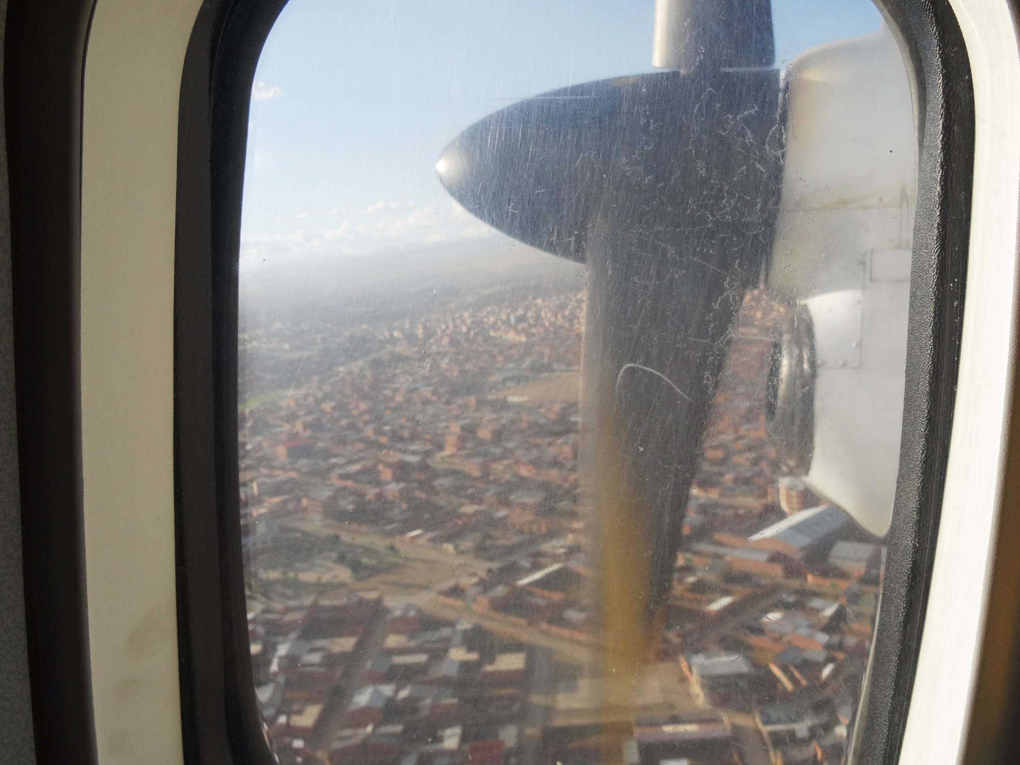 Dann landete unser Flugzeug, ein Propeller Flugzeug.