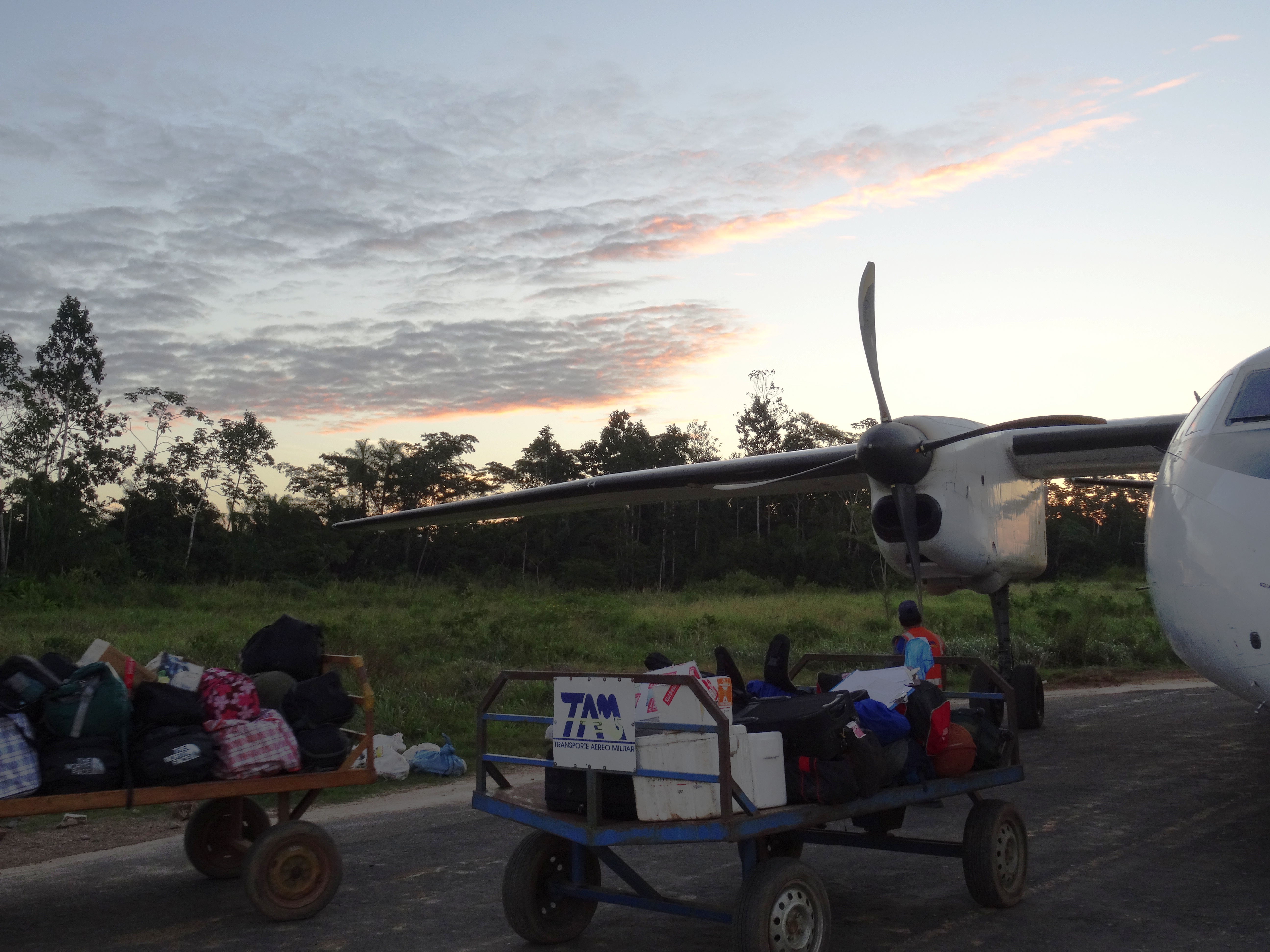 Der Start und die Landung waren außerordentlich spannend. Um es mal direkt zu formulieren, ich hatte das Gefühl, dass wir nicht aus dem A*** kommen. Wir flogen auch nicht sehr hoch und landeten nach nur 40 Minuten auf einer Schotterpiste umgeben von Dschungel. Eine solche Aussicht hatte ich aber noch nie in einem Flugzeug genießen dürfen. Riesige Bergspitzen ragten durch die Wolken. Es hatte den Anschein, als ob die Wolken sich wie eine Decke über sie gelegt haben. Ab und zu konnte man das pure Grün des Dschungels hindurch blitzen sehen.